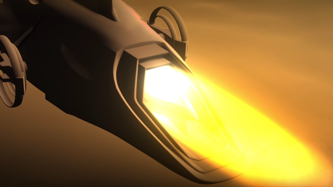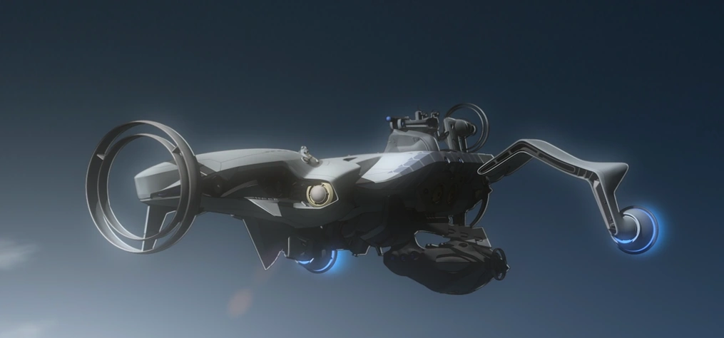 The Dolphin III is equipped with a scramjet that allows the ship to fly at hypersonic speed and an advanced stealth system that allows the ship to cloak itself both from radar and visually from sight. Both wings can rotate the jet thrusters for quick pitching upward and leveling off when reaching higher altitudes. Like its predecessors, the Dolphin III is a submersible aircraft, able to travel in the air and on the sea or under it.